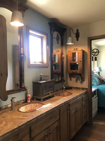 Stunning views from every room and multiple locations on property even the 40×60 shop! Home features three bedrooms, three baths, balconies from bedrooms, open soaring ceiling, unique artistic accessories and fixtures, downstairs features garage, art/work studio, guest area with bath, fully handicap accessible. Inlaid partially covered stone patio with water feature. some equipment can come with property