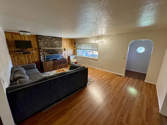 Great street presence! Large corner lot fenced w/trees front & back. The entry opens to a comfortable living room complete with a fireplace and Lopi wood stove insert. The spacious kitchen has lots of counter space plus a bar & is open to the dining area. There are 3 bedrooms & 2 bathrooms downstairs plus a massive 4th bedroom room upstairs. Two car garage , but one side has been converted to an office -(change the door & it would be a garage again ! There is a large wrap around front & side yard – plus the back yard is expansive as well – even has a fenced off sizeable garden area. A real PLUS – also has RV parking! NOTE: The home was a Child Day Care. The play ground with its equipment is included in the sale, but the Trampoline will be taken by the Seller. Easy to show now !