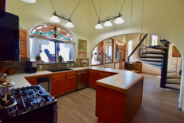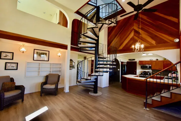 Serene settings await you on 46+ acres w/ spectacular 360 degrees views. Country living on the outskirts of Yreka. This unique home features 3 bed 2 ba w/ approx. 2800 Sq. Ft of living space. Upon entering the tiled foyer/sunroom you will be delighted at the attention to detail. Abundant natural light exudes peace & harmony on every level, as you step down from foyer you enter the main level of home featuring living room open kitchen with new countertops, Stainless steel appliances, bistro seating, 2 bed 1 bath, laundry and mud area with utility sink. The exquisite spiral staircase welcomes you to the 2nd level with a spacious loft, bath & primary bedroom which exits onto a charming deck to enjoy nights of amazing stargazing. The 3rd level of the home is for day dreamers or gathering on game nights, Spacious bonus room can function for many uses, recreation, sowing music, etc. This room is adjacent to a tranquil sunroom for those that enjoy a slower pace of meditation. Mini split & wood stove for those warm days & cool nights. New paint interior & exterior, roof 3 years old, new carpet, new laminate floors. Mature landscaping w/ multiple fruit trees. This home awaits you.