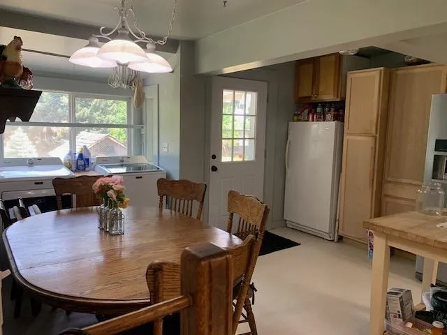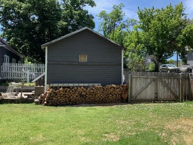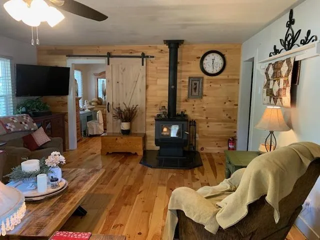 PRECIOUS COTTAGE STYLE HOME ON LARGE FENCED LOT NOT FAR FROM DOWNTOWN. FRESH EXTERIOR PAINT; VINYL WINDOWS, DUCTLESS HVAC AND BEAUTIFUL PINE PLANK FLOORING. SPACIOUS COUNTRY KITCHEN WITH NEWER STAINLESS STEEL APPLIANCES CONNECTS TO DINING AND BACK DOOR TO THE LARGE YARD. MASTER BOASTS DIAGONAL WOOD WALLS AND LARGE WALK IN CLOSET. LIVING ROOM IS SET OFF BY LARGE BLAZE KING WOODSTOVE FOR WARM WOOD HEAT IN WINTERS TO BACK UP MINI SPLITS. THE WOOD ACCENTS IN THIS HOME GIVE THAT COMFY COUNTRY FEEL AND IS SET OFF BY THE ROLLING BARN DOORS ON BEDROOMS. BATHROOM WITH TUB SHOWER HAS BEEN COMPLETELY UPDATED. DETACHED GARAGE IS 16X24 AND HISTORIC SHED IN BACK YARD IS 16X12. QUITE A MOVE IN READY PACKAGE AT AN AFFORDABLE PRICE!