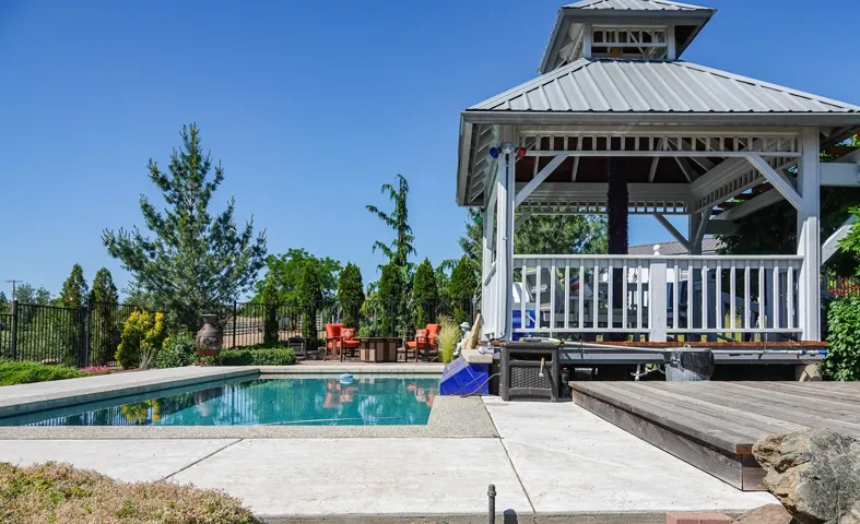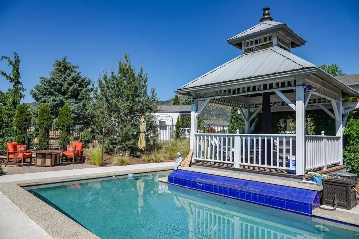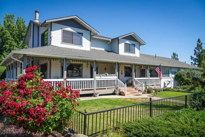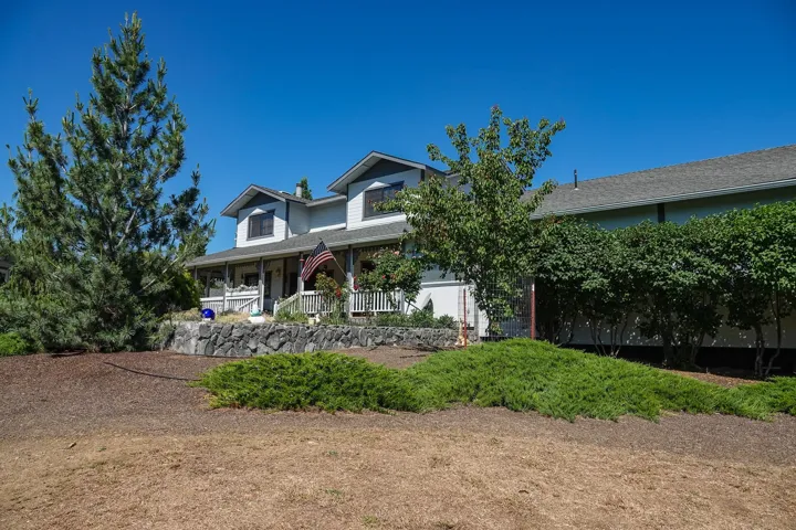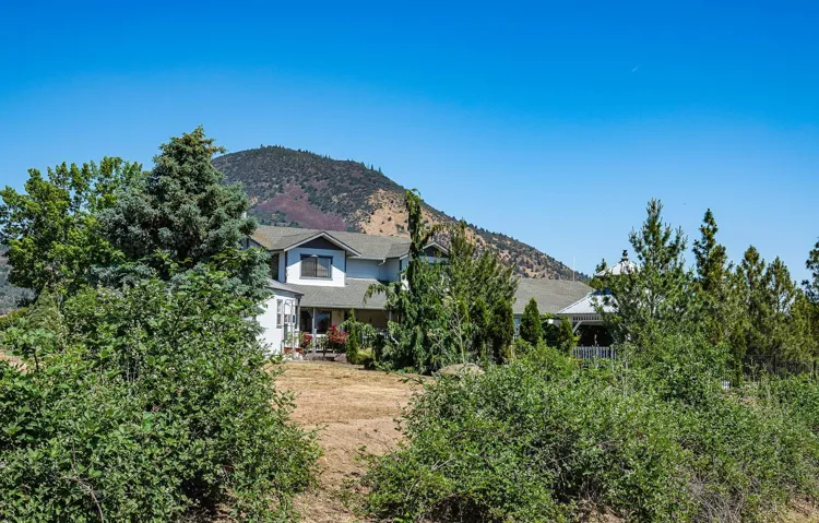 Beautiful and well-maintained country home just 15 minutes outside of Yreka! This mostly level property is beautifully landscaped & includes a seasonal creek, seasonal pond, swimming pool, trees & pretty views! You can enjoy Mt. Shasta views from the property, as well as local hills. It’s fenced and horses or other animals are allowed. The house is two story with wrap-around porches on several sides & has an attached three car garage. Downstairs, enjoy a spacious living room and kitchen with pantry & island. There’s one large bedroom, with a sitting room and bathroom downstairs, as well as a second half bath, plus an office and a sunroom with hot tub. Upstairs there are two bedrooms and bathrooms. From the front porch take the walk way to the gazebo and a water feature next to the pool. A nice patio, several areas for seating & a variety of landscaping on automatic irrigation all contribute to the relaxing atmosphere. A finished shed, with non-permitted toilet, sink and it’s own heat/ac unit makes a great space for hobbies, as well as a pump house and other sheds for storage and tools. Come tour Siskiyou country living!
