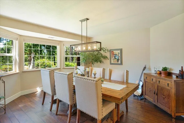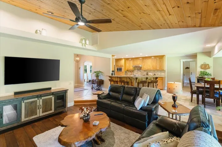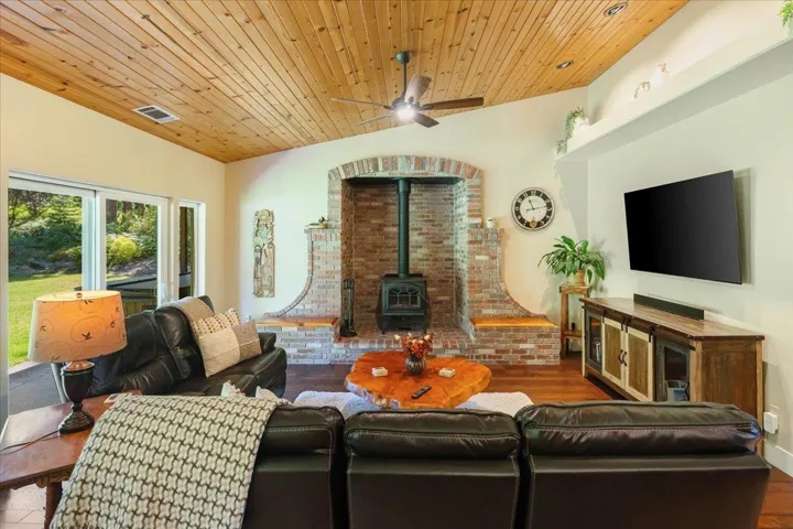 Quiet, Park Like Setting! This turn-key home is perfectly manicured and located in one of Mt. Shasta’s most desirable neighborhoods. The home was updated in 2016 and features bay windows, vaulted pine ceilings, hickory hardwood and tile floors, large brick hearth with woodstove and bench seating, ceiling fans, sky lights, granite counter tops, tile backsplash, high-end stainless-steel appliances, and fixtures, eating bar, breakfast nook with pine wainscoting, and beautiful dining room that looks out at the Eddy Mountains. The primary bathroom features double sinks, beautiful granite countertop, a tile shower, and an amazing soaking tub. The primary bedroom offers a sliding glass door that leads to the landscaped backyard with hot tub. The 1.20 acre landscaped treed parcel offers a beautiful view of Mt. Shasta, an oversized three car garage (with storage room, breezeway for additional storage, wood/storage shed, RV pad with metal cover, fully irrigated landscaping with drip system, and raised fenced garden beds. This is a one-of-a-kind home!