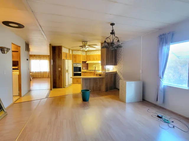 2 bedroom, 2 bathroom in great location in Oakridge Mobile Estates. Great unit, but either needs roof repairs or a new roof as there is an active leak. Great floor plan and large primary bathroom. Large living room and dining rooms. Join a great established mature community! Space rent is $600 per month and buyers must complete application to live in the park.