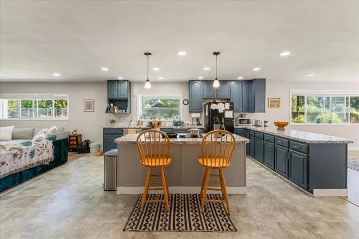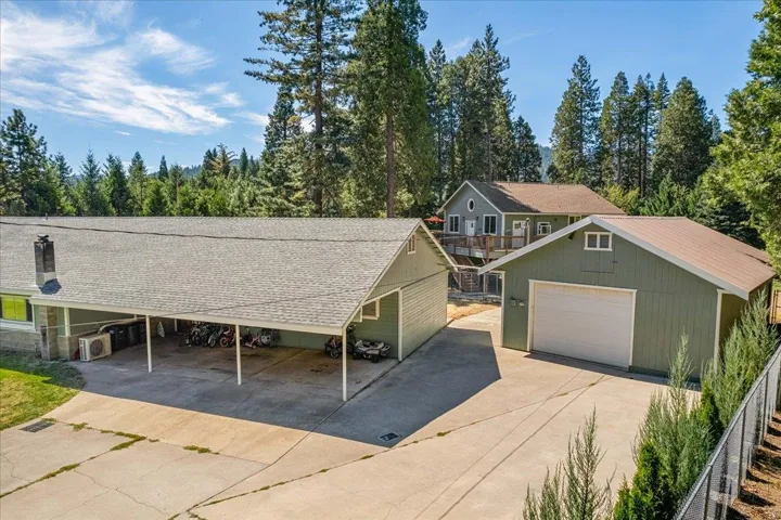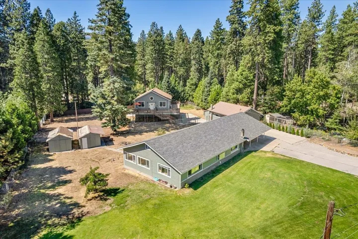 TWO HOMES!!! This property is a rare find with a single level home and a newer home above an attached garage (circa 2000) on over an acre minutes to town. So many possibilities! Great for multi-generational living or rent one for income and live in the other. Both homes have had major upgrades since original purchase. The front ranch style house has 4 bedrooms, 2 baths, and an extra bonus/playroom/den area. Upgraded kitchen, cozy woodburning stove as well as mini splits and electric heat pump, and new 30 year roof last year. The carport area and large detached garage provide plenty of storage and parking. The second home has a wonderful deck to entertain and enjoy the Mt. Shasta view. A gated entrance and fenced yard for separateness and attached 2 car garage. This 3 bedroom 2 bath residence has a gorgeous interior with too many upgrades to list. Brand new kitchen, primary bedroom with ensuite including jetted tub, large laundry room, workout area, and a bedroom downstairs that can serve many uses. Schedule your private tour today! Square footage of both homes per seller. Buyer to verify. Virtual tour: https://bit.ly/3AZEp5Z and https://bit.ly/4efkUok.