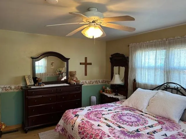 Close to downtown; very private rear yard. Custom touches come with this charming older home–beautiful hardwood flooring throughout, Kitchen has custom cabinetry and nice appliances, many cabinets and lots of counter space. Large view windows from living room to picturesque landscaped back yard; french doors from dining room to back patio. 2 bedrooms on main level with tiled tub/shower and flooring in hall bath. Up a few steps to primary suite with its own heat/air; lovely bathroom with walk-in closet, bathroom has tiled flooring, vanity and large walk in tiled shower. Fireplace in living room with woodstove insert plus monitor heat and minisplit to add AC. Large shade trees around yard and patio; 2 levels of lawn in rear yard plus nice storage building. Alley access on side. This home has so much special character and is in move-in ready condition.