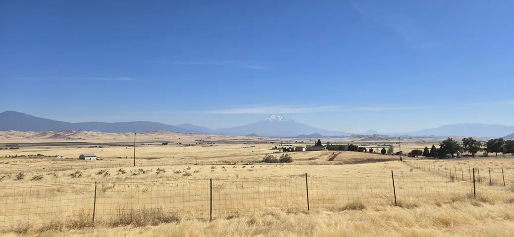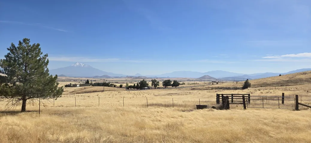 This an ideal location for those seeking peace and quiet with far reaching views of the Shasta Valley and majestic Mt. Shasta. Spacious family home with 3 bedrooms and an office that could serve as a 4th bedroom. Open floor plan and beautiful wood flooring. Central heating and air conditioning with propane fireplace and wood stove. The acreage is fenced and cross fenced for your animals. Oversized garage with heating system. Nice deck for entertaining and relaxing. Bring your livestock and kids, this will make a wonderful home!