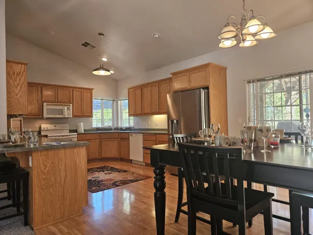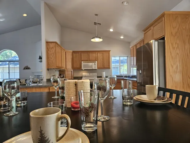 What a wonderful place to call home. This home offers 3 bedrooms, 2 bathrooms, a huge kitchen with tons of cabinets, counter space and storage with a built-in bread storage and corner sink with windows looking out to the back yard. The living room and kitchen have vaulted ceilings for a very large and open feeling. This home has a great layout for entertaining, there is even a corner fireplace. The primary bedroom is quite large with room for a California king bed, dressers and even a couch, the primary closet is equally impressive, measuring approximately 5 x 15. All this Plus a 3 car garage that has a nice shop area and its own heater separate from the home. There is RV parking that has a 220 amp plug. The yard has natural landscaping with a sprinkler system. With a full price offer, All furnishings are included and the seller will pay all title, escrow and transfer fees. Lake Shastina is a Golf and Lake community with its own fire and police departments, there’s even a medical clinic. Don’t forget Hoy park with activities throughout the year. Call today for a showing.