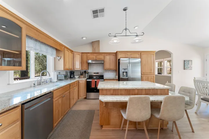 Owner open to Carrying Partial or Full Owner Carry!! With panoramic views of the snow-capped peaks of Mt Shasta, this remarkable Airbnb Retreat Center or extended compound is a sanctuary of serenity & natural beauty. Property is fully fenced w/road system throughout the 90+ acre estate, encompassing a main home & mult. outbuildings, including 7 geodesic domes, all designed to harmonize with the surrounding landscape. On the market for the first time since being fully remodeled, the 2585 square ft main home serves as the heart of the property, featuring, 3 bedrooms & 3 baths w/ walk-in closets & a fully-equipped kitchen. In addition, there is a secondary 704 square feet stand-alone structure that offers additional showers & bathrooms, a second kitchen & dining area, sauna & cold plunge tub. Plus, a conditioned 480 sq. ft. detached third building that could be a yoga or med. center, office or whatever suits your needs. There are two metal carports for additional equipment storage, a horse barn with 4 stalls, additional sheds & fully enclosed & insulated pump & holding storage units for the 3 high producing wells. This property is fantastic for horse riding, ATV riding, exploring!