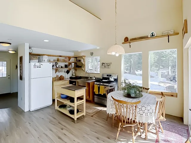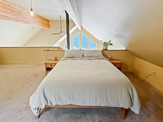 CHARMING OFF-GRID MT SHASTA FOREST CHALET! This 2bd/1ba custom home on 2.5 acres bordering National Forest, offers 760 sq ft of light-filled living space surrounded by nature’s beauty. Whether as a full-time residence or second home, this chalet is the perfect retreat for outdoor enthusiasts! The home features soaring vaulted ceilings, stunning log siding, a durable metal roof, and a warm wood stove and propane heater for year-round comfort. Since 2022, the home has seen several upgrades, including new vinyl plank flooring and carpet, interior paint, propane fridge and range, washer, custom bathroom vanity, shipping container workshop w/ wood stove, fenced garden area, well pressure tank, and a beautiful cedar deck and woodshed built with wood from the land. The off-grid power system has also been upgraded to include new solar panels, batteries, and an OutBack inverter/controller. A firebreak and trail at the back of the property provide additional outdoor enjoyment. Whether you’re looking for a peaceful permanent home or a getaway to enjoy Siskiyou County’s outdoor wonders, this chalet is the perfect choice. Don’t miss the chance to make this beautiful home yours!
