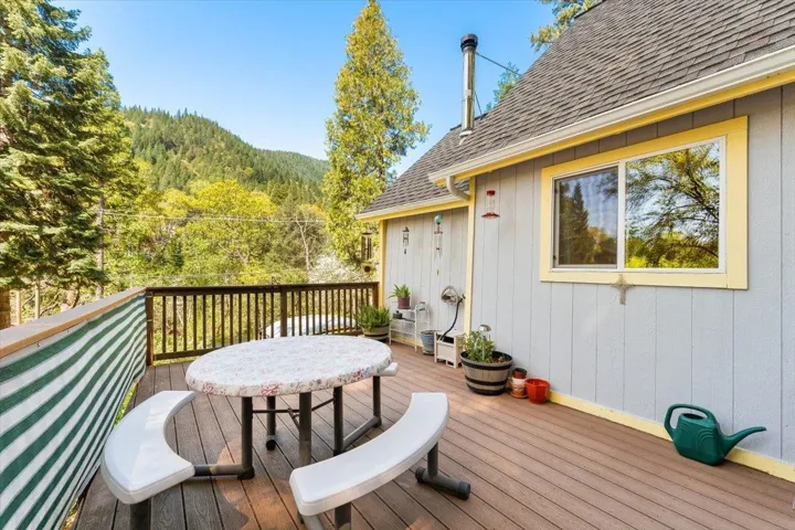 Step into this delightful three-bedroom, one-and-a-half-bath home that invites you to experience the enchanting beauty of garden spaces, all while enjoying the soothing sights and sounds of the Sacramento River. This property features a spacious deck and patio, along with a versatile bonus room, surrounded by mature trees—ideal for those seeking a peaceful retreat. `Picture yourself on your private deck, enveloped in lush greenery, as the gentle flow of the river creates a serene backdrop for relaxation. This sanctuary offers an escape from the chaos of daily life, allowing you to fully embrace the tranquil beauty of nature. Meticulously remodeled and renovated both inside and out, this home welcomes you with a new Trex deck leading to the front entryway, complete with inviting sitting areas that enhance its charm. The living room showcases breathtaking views of the river and natural landscape, highlighted by a captivating rock hearth that houses a cozy wood stove. The well-appointed kitchen features a convenient breakfast bar and a gas range, perfect for culinary enthusiasts. Upstairs, discover a spacious loft room. Don’t miss out on this extraordinary opportunity.