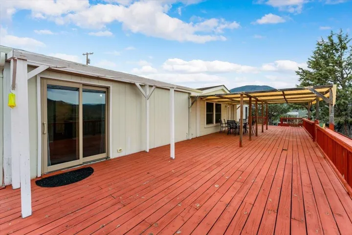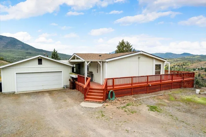 Hilltop Living with Breathtaking Views! Perched on 4.8 private acres, this comfortable 3-bedroom, 2-bath home offers stunning panoramic views of the Klamath River, Pilot Rock, and Mt. Ashland. Recent upgrades include vinyl plank flooring and energy-efficient vinyl windows, making it move-in ready. Enjoy country living with plenty of room for gardening, pets, and hobbies. The property features a detached oversized garage with a workshop area, RV hook-up, and fully fenced and privately gated. Located in the KRCE community, residents have access to HOA amenities including a clubhouse, pool and Klamath River access. Don’t miss your chance to enjoy all the spaces this hilltop retreat offers—schedule your showing today!