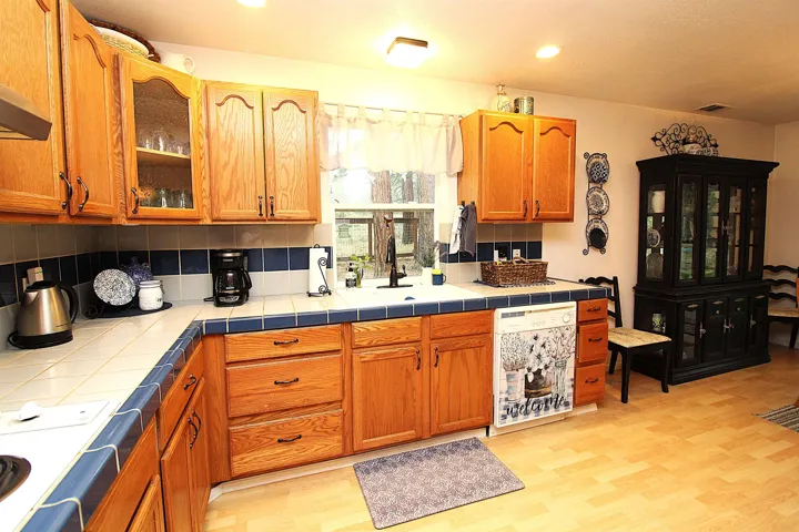 PRIVACY GALORE!!! Greenbelts & vacant lots surround this beautiful gem of a home at the end of a cul-de-sac & away from main roads. A well-cared-for home that “hugs” & invites you to linger as soon as you walk onto the property & through the front door. Vaulted ceilings, a charming brick archway between living room & the large kitchen/dining area & a spacious living room are just the start. The primary & front bedrooms are quite roomy, yet feel “oh, so cozy!” The primary bedroom offers French doors that open to the luscious backyard & a generous patio area. The third bedroom is comfortable in size with a lovely view from the window & would also make a perfect study/office/den – as it is currently used now. The kitchen is spacious with plenty of counterspace & cabinets. Tile countertops throughout; tile & laminate flooring. Just off the kitchen is the dining area with a sliding glass door for access to that beautiful backyard, perfect for entertaining or just relaxing with a good book or your favorite garden tools. Leave the hustle & bustle of the world & enjoy peace, quiet, PRIVACY & a warm inviting home. Call your agent TODAY to schedule YOUR private showing of this beauty!