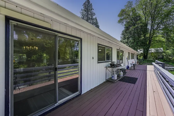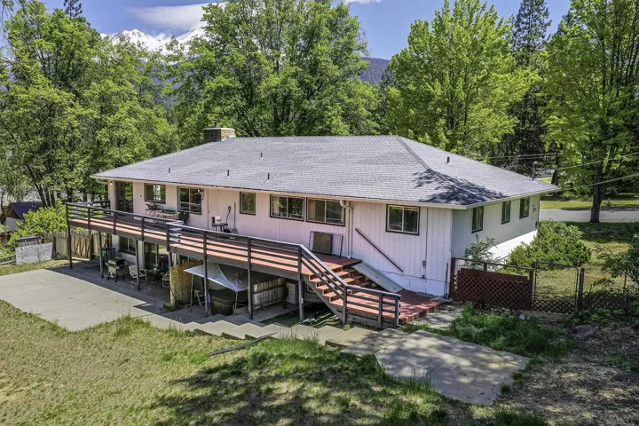 Spacious Midcentury Home with Apartment nestled on a quiet, wide street just minutes from downtown and local parks, this charming 1976 midcentury home offers over 3,000 square feet of versatile living space on a generous 0.83-acre lot. The main house features 5 bedrooms and 2 full baths, with a bright, light-filled kitchen showcasing custom cabinetry and newer appliances—perfect for gatherings and daily living. Enjoy the warmth of a pellet stove in the cozy living room, complemented by wood laminate flooring in the entry, kitchen, and hallway, tile in the bathrooms, and soft carpet in the living areas and bedrooms. Minisplit heating and cooling units have been thoughtfully added to the dining area and spacious primary bedroom for year-round comfort. Downstairs, a separate apartment with its own wood stove, mini-split, kitchenette and shared laundry facilities offers ideal potential for guests, extended family, or rental income. Step out to the expansive back deck and enjoy the peaceful, private backyard—perfect for entertaining or relaxing outdoors. A blacktop circular driveway leads to an attached two-car garage, adding convenience and functionality to this well-rounded property.