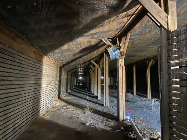 Storage/Cellar on Rd. 111 & next to Burlington Northern RR in Tulelake CA. This building is 200’ long & 46’ wide with an asphalt floor, and is on land that is owned, (land is not leased from the RR). 3- swinging, double doors on each end. Middle door is 13’6” high. Outside doors are 10’6” high. Formerly used as potato storage, but can have other uses, such as hay or equipment storage.