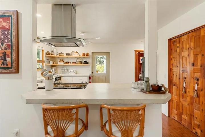 Modern Mountain Magic on 3.1 Private Acres – Views, Style & Serenity Await! Tucked away on 3.1 private acres just minutes from downtown Mt. Shasta, lakes, trails, golf, and the ski park, this stunning 3BD/3BA home offers a seamless blend of rustic charm and modern upgrades. Features include a new roof, bamboo hardwood floors, fresh interior and exterior paint, vaulted ceilings with Doug fir beams, skylights, stained glass accents, statement lighting, and more. The gorgeous kitchen boasts new GE stainless appliances, concrete countertops with tiled backsplash, and a raised eat-at bar. A new pedestal wood stove on a porcelain-tiled custom hearth and new mini-splits for heat and AC ensure year-round comfort. Enjoy breathtaking views of Mt. Shasta and vibrant sunsets over The Eddies from patios, decks, and winding pathways. Outdoor highlights include RV parking, garden beds, new Jacuzzi with cedar privacy fence, lovely wildflower & native flora beds, a custom steel and wood pergola, fire pit, and peaceful rock labyrinth. A private barn-style cabin/ADU provides a charming guest retreat. Most furnishings available—an artistically crafted mountain sanctuary!