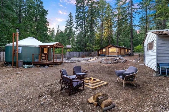 A cabin that hugs you back. Step inside and feel the kind of cozy that warms your bones. Nestled on Pony Trail, this sweet 3-bedroom, 1-bath retreat rests on forested land that backs directly into 100 acres of National Forest, offering peace, privacy, and room to roam. Every detail here is wrapped in rustic charm with wood paneling, warm textures, and thoughtful touches. Just steps from the main cabin sits a full-size yurt with its own wood stove — a space that feels sacred and full of possibility. Use it for yoga, meditation, art, or simply as a cozy hideaway under the stars. You’ll also find a greenhouse ready for your seedlings and several storage buildings. With many recent updates this is one of the best buys on the market. Located in the charming town of Mount Shasta — with its adorable shops, restaurants, parks, and endless outdoor activities — this property is both a retreat into nature and a gateway to community.