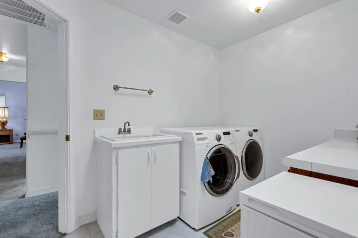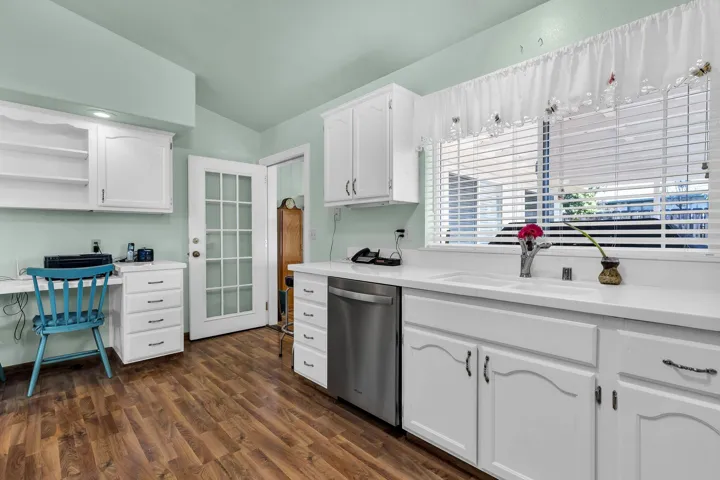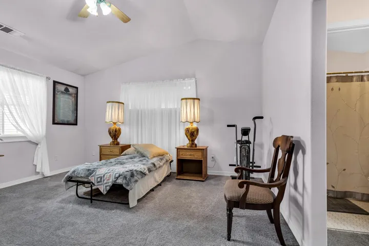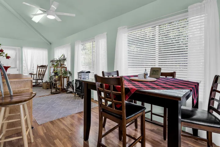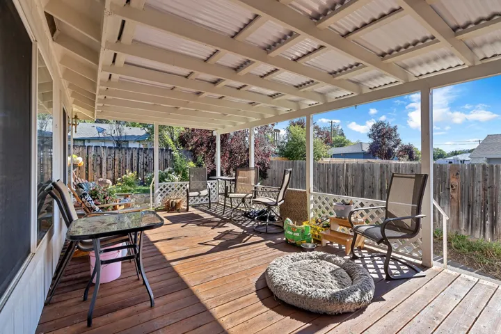 Built in 1996, this 3 bedroom, 2 bath home has vaulted ceilings, recessed lighting, dual pane vinyl windows throughout and heat pump for central heat and air. Well appointed kitchen has efficient yet spacious floor plan with view to the covered back deck and door to the sun room addition where the view is calm and colorful through nearly floor to ceiling windows, bring your green thumb and plants. Light pours in the living room which is open to the dining area. Full laundry room just in from the attached garage. Hall bath has tub shower and tile floors and counters. Largest bedroom includes walk-in closet and has en-suite bath with double sinks and step-in shower. Yard is fenced in front and back with sidewalks on all sides. Backyard is private and lawn areas in back are artificial grass, so no no need to mow. Is this your new address? Call for an showing today!