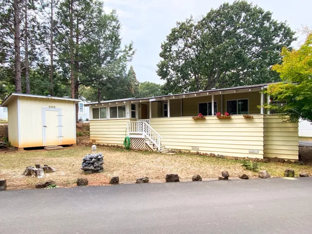 Adorable manufactured home in Oak Ridge Mobile Estates. This is an all ages mobile home park with pool! One bedroom plus office and one bathroom, bright kitchen, comes with appliances. Lovely covered deck and carport. Two storage sheds on a corner lot with extra yard area.