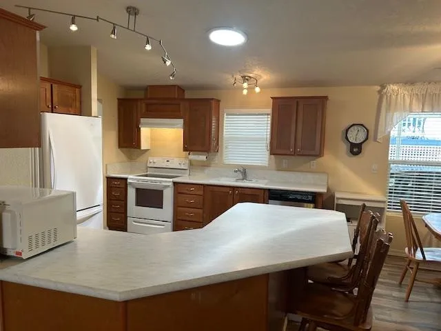 Picture perfect and move in ready. This perfect home in desirable park at the north end of Yreka. Large breakfast bar, nearly new appliances; vaulted ceilings and open living area. Large primary ensuite with spacious bath and large step in shower. This home has been well taken care of. The views from the deck to the hills and trees are just beautiful. Long carport and spacious storage shed at rear. Don’t miss this one!