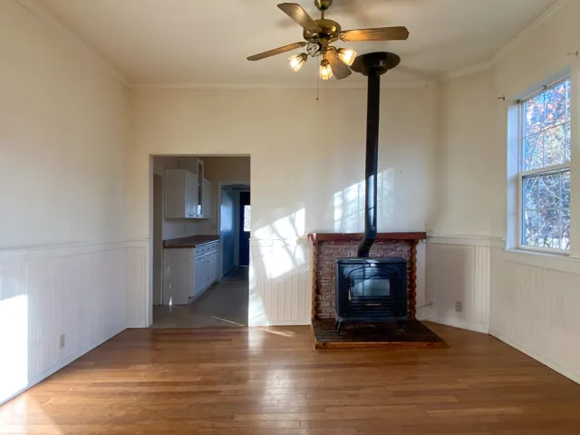 Close to schools, shopping, I5, and great restaurants. You have a near by fuel station, and even a nursery, at this quiet street in town. This one is ready for you to come in and make yourself at home. Large open layout connecting dining room and living room would be convenient, even with large gatherings! Through the dining room you meet the kitchen, clean, simple and spacious with lots of storage for your needs. A laundry room at the very back of the house with utility sink, shelf, and cabinets for your added convenience. 2 bedrooms and full bath are located to the west at the dining area. Upstairs you will find a large loft style primary suite, with half bath. Lie down at bed time and look up into the stars with sky lights lining the ceiling. If you are watching the rain, the moon, the stars or even the snow, you will get a great show! Heat is Kerosene stove!