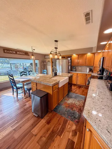 Private 3-bedroom, 2-bath ranch on 23 fenced and cross-fenced acres in Montague, ideal for a hobby ranch or a quiet retreat. Home is set back from the road and fully updated with hardwood floors, granite countertops, farmhouse sink, roll-out cabinetry, mini-split heating and cooling, new carpet in bedrooms, and a primary suite with private sunroom through French doors. Energy-efficient windows and new roof (2020). Property includes a large hay barn, hog pen, 920-sq-ft workshop with power and wood stove, 560-sq-ft double-height garage, and three carports, two suitable for RV or trailer parking. Turn-key acreage offering privacy, functionality, and room to grow.