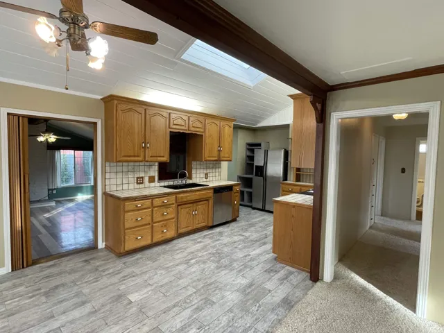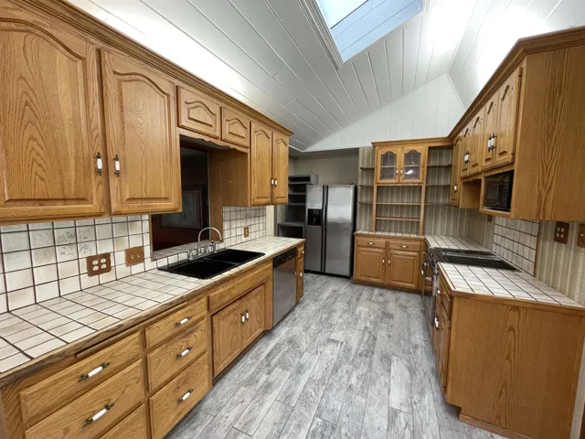 A mechanics dream! This property includes a 23′ x 34′ shop with two sliding doors for easy access from the alley and the driveway. But wait there is more! This shop comes with a charming 3 bedroom 2 bath home where the kitchen is at the heart everything! Includes vaulted ceilings w/ skylights, upper & lower oak cabinets and loads of counter space all done in tile, plus a pass-through window to additional living space where the vaulted ceilings continue and there is a removable custom bar. Great access to the back deck. Dining area with bay window, living room at the front of the home, two secondary bedrooms and primary bedroom with attached bath and slider accessing the back deck. This property is unique with ample off street parking and the Terra-Cotta roof is a big plus with fire insurance. You can’t miss the bonsai style plants in the front yard that have been loved by so many! This is a Yreka gem and it is ready for your next adventure!
