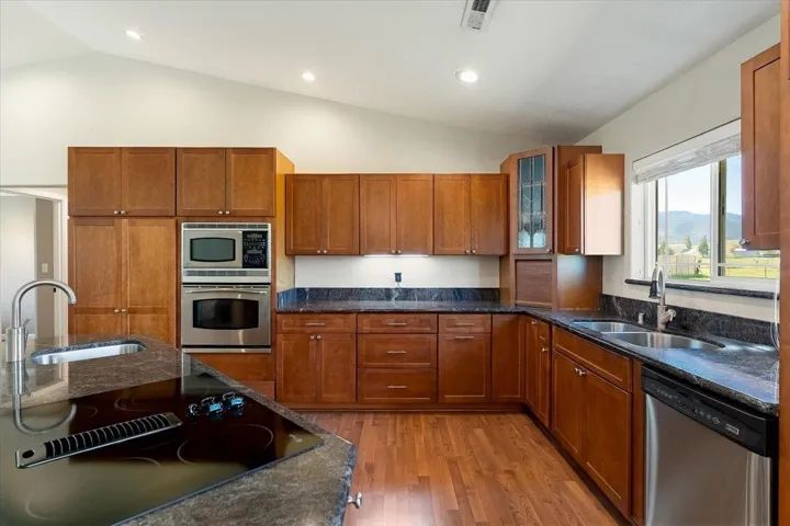 Beautiful custom home sitting on 1.25 acres on the edge of the town of Gazelle, nestled surrounded by open ranch/farm land, boasting incredible wide open skies and mountain views. These properties are extremely rare; over an acre, sweeping views, turn key custom home, close to Yreka and Weed for convenience that is very hard to find. Property is zoned R-R which allows small agriculture, some livestock, horses ok; let the homestead ideas come to life on this gem of a property. The house was custom built in 2005 and offers 3 bedrooms and an office/bonus space that could be used as a 4th bedroom. 1 full guest bathroom and attached primary bathroom complete with jetted tub, tile shower, double sinks, and large walk in closets. One for him and one for her. The kitchen is the centerpiece of this open concept floor plan, with granite counter tops and diamond custom cabinets with maple cherry finish; chefs dream kitchen! Perfect for entertaining guests with half bar/ktichen island that opens up to main living area. Vaulted ceilings, central vacuum and dust pan collector in kitchen, create a luxury feel in this well thought out home. Look no further and don’t wait, this won’t last long!!