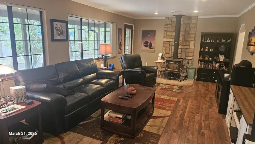 Rare Scenic Acres estate on 1.6 wooded acres — just minutes from downtown Mt. Shasta with peek-a-boo views of the mountain! Main residence offers ~2,300 SF, 3 bed/3 bath, vaulted ceilings w/exposed beams, skylights, French doors & updated gourmet kitchen w/granite countertops, tile floors, new sink & double ovens. Stunning living room w/stone fireplace surround, wood stove & new laminate/hardwood floors throughout. Whole house generator included! Separate ~1,450 SF guest quarters — ideal for multigenerational living, rental income or private retreat. Recent updates: new roof, new leach lines, new deck & stairway, tumbled stone walkways & new 220V pump house line. 4+ car attached garage, workshop, shed & beautifully landscaped grounds w/sprinklers. Well & septic. Propane F/A heat + pellet stove, wood stove & monitor-oil backup. High-speed internet & cable. Enjoy the peace of wooded country living with town, dining, skiing & recreation just minutes away. A true legacy compound! Tour: https://www.zillow.com/view-3d-home/8299a1a6-c60a-4701-b289-b48434db47a9?setAttribution=mls&wl=true&utm_source=dashboard