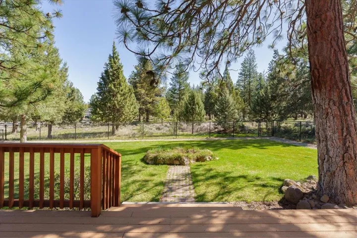 Located on a quiet cul-de-sac in Lake Shastina, this inviting home welcomes you with a charming covered front porch—perfect for morning coffee and peaceful mountain air. Inside, vaulted ceilings and a bright, open great room create an easy, connected flow between the kitchen and living space. The kitchen features custom knotty alder cabinetry, a large pantry, new stainless appliances, and a functional breakfast bar cooktop island that keeps you part of the conversation while entertaining or enjoying everyday life. The rock-faced fireplace anchors the living room, while large windows and a slider lead to an expansive back deck that extends from the great room to the primary suite, overlooking a fenced backyard with green lawns, an herb garden, and the golf course just beyond—an ideal setting for outdoor dining and quiet evenings. Just under 2000SF on 1/2 ACRE, a spacious split floor-plan provides privacy, with a spacious primary retreat featuring a walk-in closet, jetted soaking tub, tiled shower, and direct deck access. Highlights include fresh interior and exterior paint, brand-new carpet, Milgard windows, solid wood doors, an oversized insulated garage, and a 40-year Elk roof.