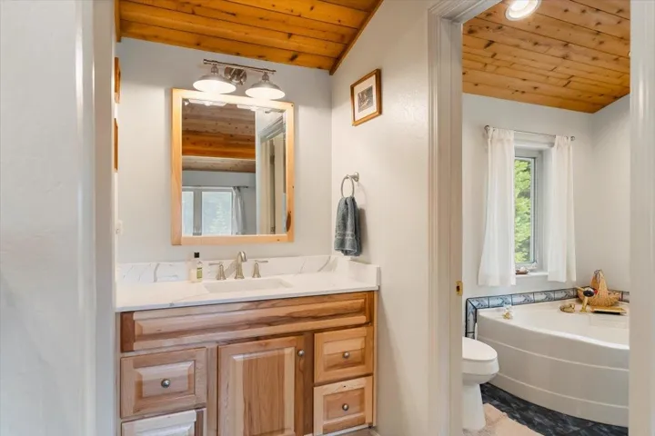Escape to this cozy off-grid 2 bed, 2 bath Lindal Cedar Homes cabin nestled in the serene Mt. Shasta Forest Subdivision. Set on a beautifully cleared and maintained 2.6-acre lot, this property offers peace, privacy, and mountain charm. The inviting cabin features soaring vaulted ceilings, a bright open floor plan, and tall gable windows that frame stunning views of the surrounding forest. Warm, rustic design elements blend with modern comforts. This property is set up perfectly with sustainability in mind featuring an energy system built around a solar array, with installation of a new inverter and Lithium Batteries in 2025 that combine with a high-quality and high output generator make this ideal for off grid living. Enjoy the outdoors year-round from expansive decks that wrap the home, and unwind in the wood-heated hot tub under the stars. A spacious 2-car garage includes a finished bonus room above, perfect for a studio or guest space. Cabin comes fully furnished and ready for new owners to move in and get cozy. This property has been lovingly cared for and is a well-maintained oasis in this quiet mountain community. Adventure, solitude, and natural beauty await!