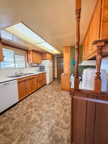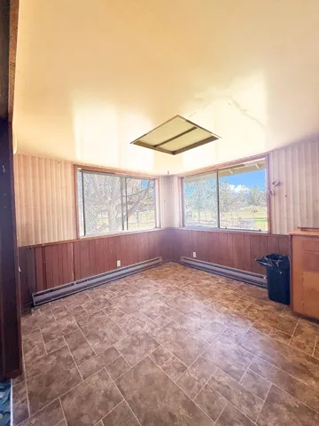 Original home of 2 bd 1ba with additional sq footage in county records. Garage was converted into an extra bedroom – upstairs – and huge den area. This area has a half bath, sauna, and baseboard heaters. Main house has Monitor heater and electric wall heaters. There is a single car, car port in front of the home and three double car ports behind. There are also a shed and a 40′ container fitted out as shops with power. There is a small greenhouse and mulch pile, a fenced garden area, a garden shed, pole barn, and a large covered areas used for wood storage. There are sprinklers for the front lawns and water to the garden area. Kitchen includes most appliances, plus cupboards and storage galore. Range and water heater are propane. Home also has a covered concrete patio at rear with a lovely view of Mt Shasta.