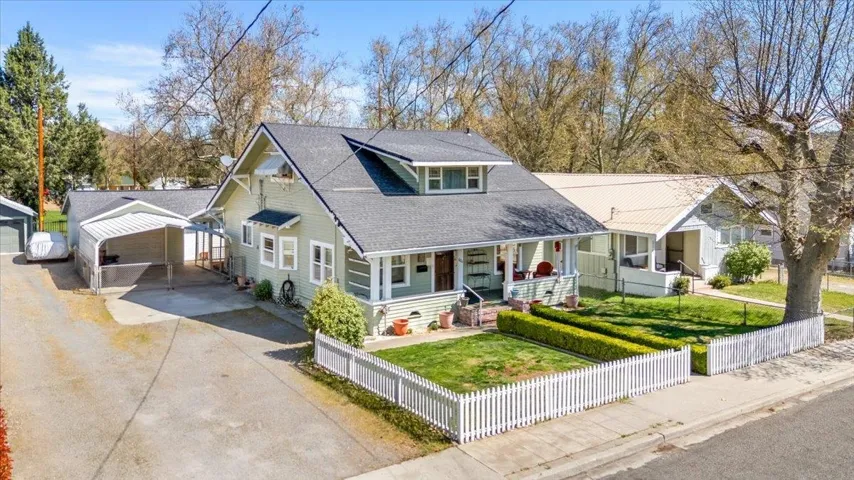 Presenting the Orr Home—a beautifully preserved historic residence thoughtfully updated with modern conveniences. Featuring rich wood trim and distinctive custom architecture, this home offers character you simply can’t replicate. Recent upgrades include double-pane windows, central heating and air, and electrical improvements, providing comfort and efficiency throughout. The spacious living room welcomes you in, while the main level offers two bedrooms and a full bath. A stair lift provides easy access to the second-level primary ensuite, complete with a walk-in closet, bath with dual sinks & a soaking tub, and an additional space perfect for reading or sewing! The inviting kitchen features pendant lighting and flows seamlessly into the dining area, where French doors open to a covered porch. Step outside to enjoy the backyard’s water feature, peaceful views, automatic sprinklers, and direct access to Miner Street Park. Additional features include a detached garage with a separate 15 X 20 workshop. Enjoy concerts in the park and the convenience of nearby schools, downtown dining, and shopping in this historic town! Schedule your showing today!
