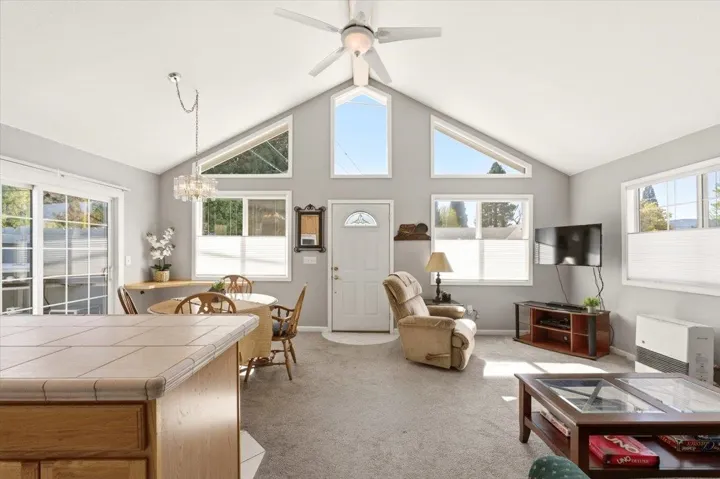 Charming Mt Shasta Chalet with Mountain Views! Welcome to this adorable 2bd/1ba chalet offering 793 square feet of thoughtfully designed living space in a prime Mt Shasta location. Just a short walk or bike ride to local schools, parks, restaurants, and town amenities, this home combines convenience with mountain charm. Fully remodeled in 2003, the interior features vaulted ceilings and an open-concept floor plan that creates a bright and inviting atmosphere. Recent updates include interior and exterior paint, new carpet, and a rebuilt monitor heater. The kitchen offers a cozy eat-in breakfast bar, plus an additional dining area perfect for casual dining. Enjoy beautiful views of Mt Shasta and the Eddies from the front porch and most rooms of the home. A sliding glass door off the dining space opens to a private, low-maintenance, fenced patio—ideal for relaxing, entertaining, or even adding a hot tub. The attached 1-car garage adds convenience and functionality with pull-down ladder access to generous overhead storage. If you’re seeking a centrally located, low-maintenance home with incredible views and cozy character, this Mt Shasta gem is ready to welcome you!