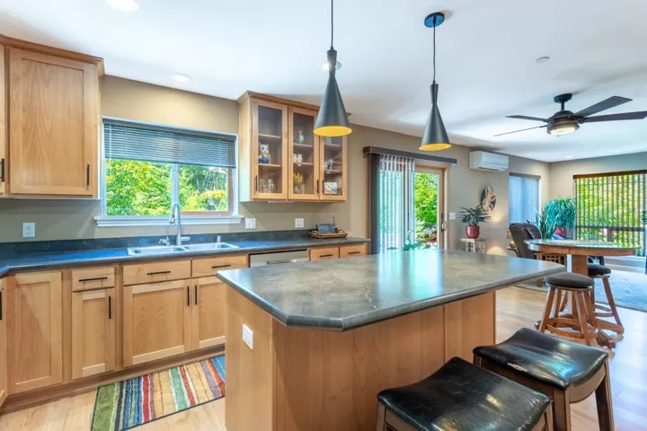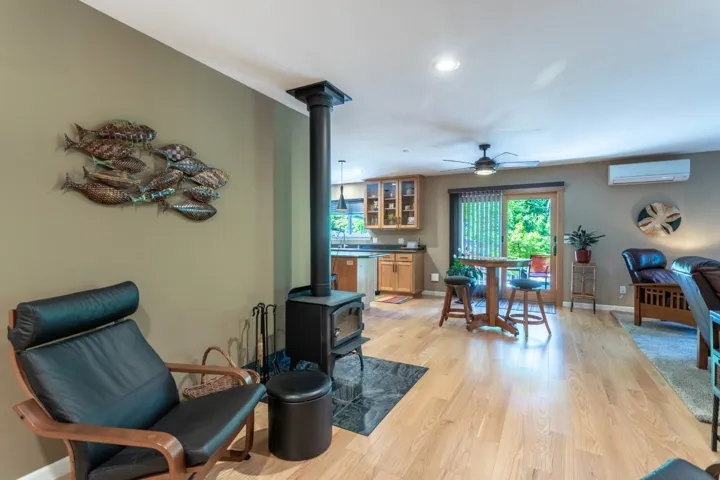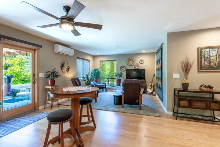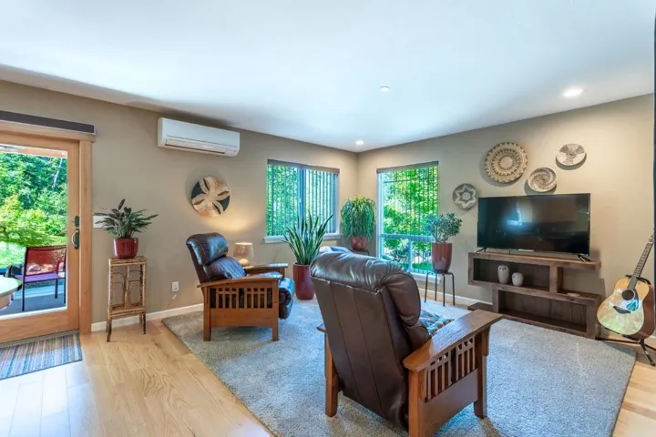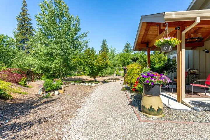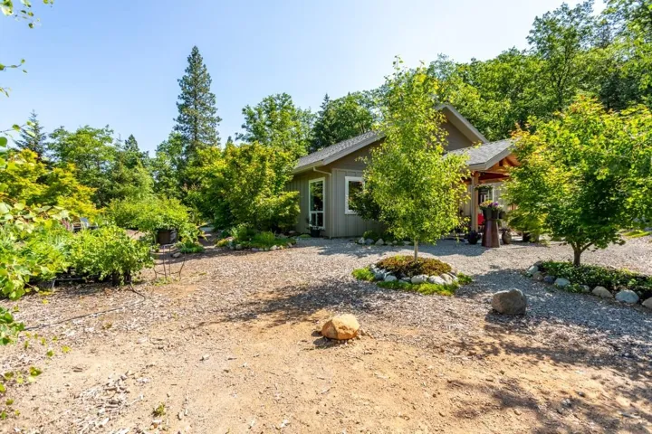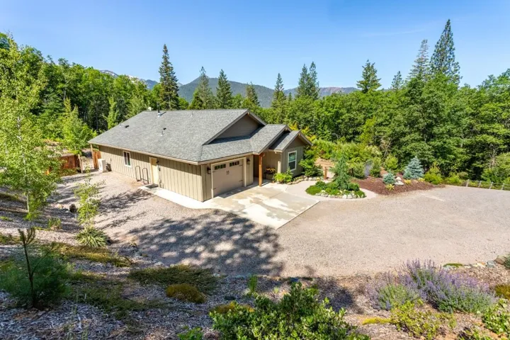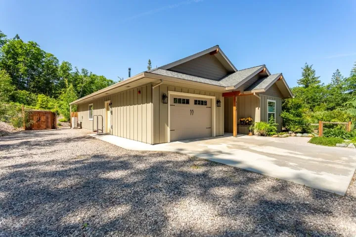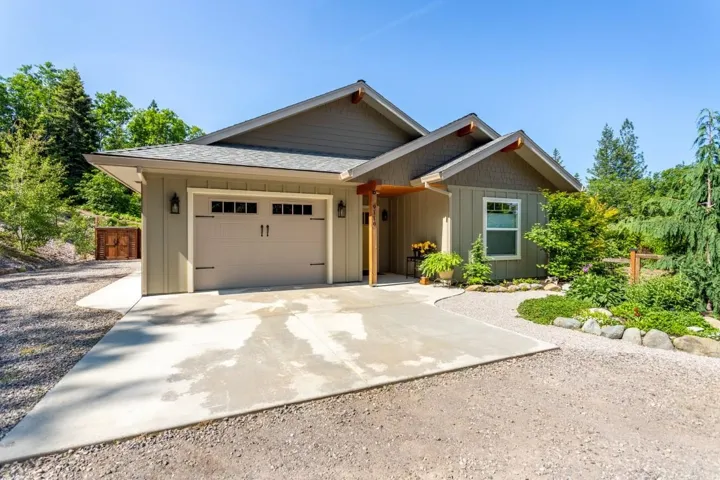 Welcome to this beautifully crafted 3bd/2ba custom home, situated in desirable Hammond Ranch! Built in 2017 and lovingly maintained, this private, fenced, and gated 5-acre property offers a perfect blend of comfort, quality, and natural beauty. The inviting living room opens to a patio shaded by a stunning custom timber frame cover—perfect for enjoying the gorgeous views of the Eddies! The open-concept kitchen is both functional and stylish, with alder wood cabinets, a large island, stainless steel appliances, pantry, and warm pendant lighting. The master suite offers a peaceful retreat with a large walk-in closet and en-suite bath featuring granite counters, double sinks, and a walk-in shower. Two additional bedrooms provide light-filled space for guests, family, or work-from-home needs. Outside, enjoy a fenced garden area, storage sheds, RV parking, and auto-drip irrigation throughout the fenced 3-acre portion of the property—perfect for keeping gardens thriving and deer at bay. High-speed internet from Cal-Ore adds convenience for remote work or streaming. This is a rare opportunity to own a well-appointed home in a quiet, natural setting. Schedule your private tour today!