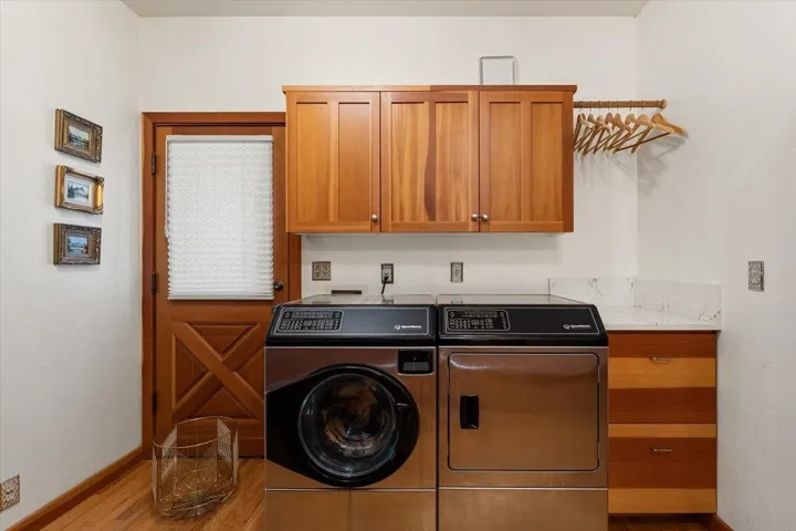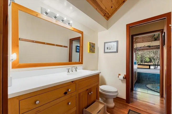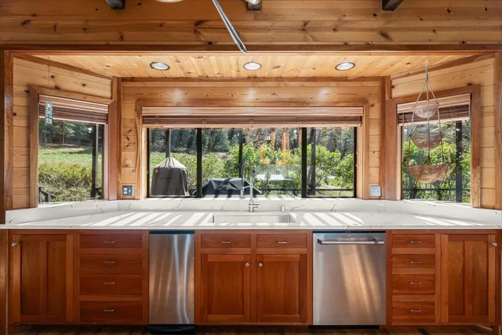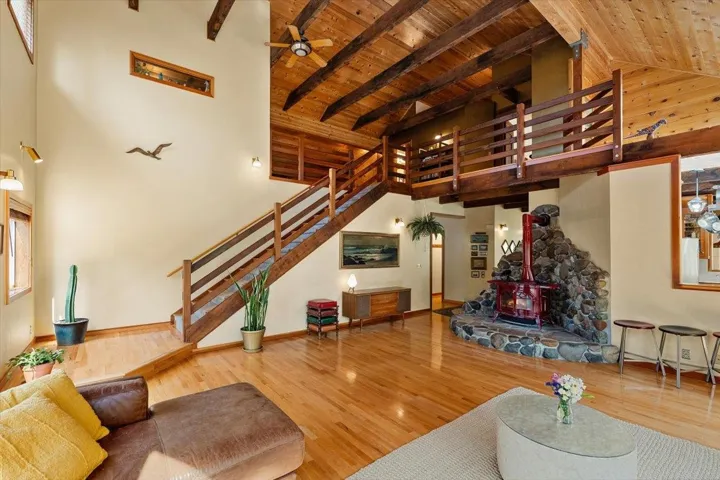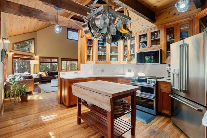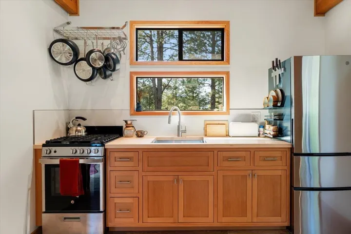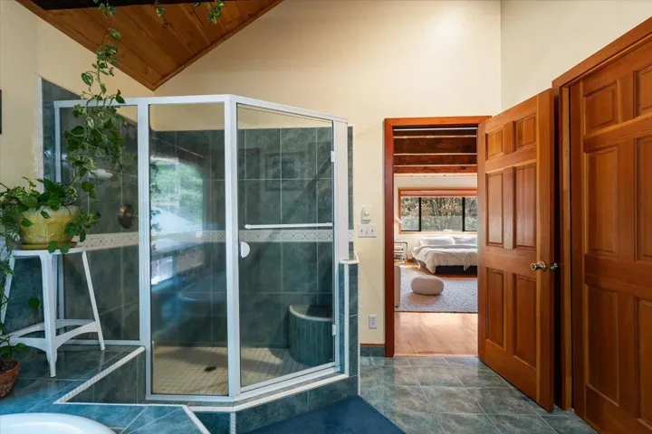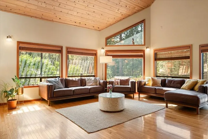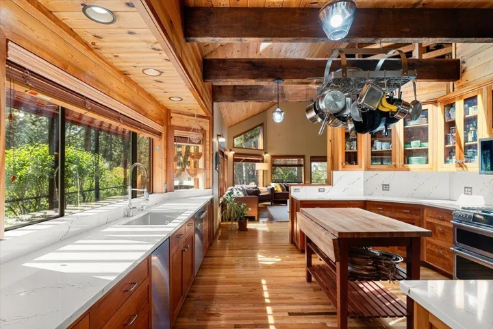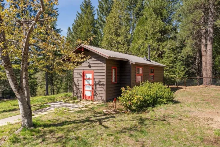 Welcome to Lost Creek, an exceptional mountain estate set on 20 private acres. This stunning retreat features miles of improved trails and a year-round creek. Enjoy two fully fenced acres with a sprawling lawn and native landscaping, a 50×50 garden with deer fencing and irrigation, and a custom playhouse. A paved circular driveway, two electronic entrance gates, and a whole-house generator provide convenience and peace of mind. A custom 500 sq ft ADU, additional garage space, and a large dog kennel complete the exterior. The spacious 4 bedroom (+ office)/ 3.5 bath home includes a large upstairs primary suite with a cedar walk-in closet and sun-filled alcove. Solid oak floors throughout are complemented by tongue and groove ceilings, 2 skylights, high-end window blinds, tons of storage and a basement workshop. The modern kitchen features new quartz countertops (also in the laundry) and GE Café appliances. Enjoy year-round comfort with central heating and cooling, plus a Vermont Castings wood stove in the dramatic living room. The cedar home is crowned by a vibrant new red metal roof. This ultra private showcase property feels worlds away, yet is a short drive to town. A must-see!